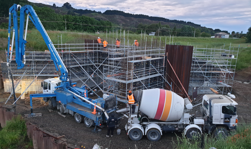 “The floodgate project with Currie Construction has been a little challenging as the weather played havoc with us,” says Steph. “Every pour has been intricate as the slump had to be tested onsite and mapped for Council consents. The road in and out only allows one truck at a time, and with it also being 30mins out of town we had to coordinate the slumps and the timing of the trucks. The site itself is on an incline and with the wet conditions we used a top pump which boomed into a second pump which pumped into the flood gates. However, we worked closely with Currie’s and we got the pours completed successfully.”