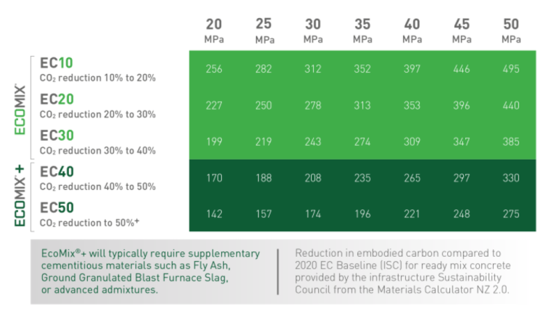 The concrete industry is working hard to reduce their carbon emissions through the use of lower carbon cements (such as EcoSure from Golden Bay) and Supplementary Cementitious Materials in the mix design.